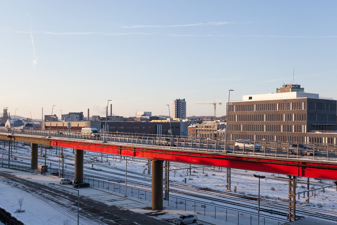 « Faire en sorte que la Petite Ceinture de Charleroi (R9) joue un rôle plus positif dans l'identité de l'espace urbain ». C'est ce qui ressort du cahier des charges établi par la Région wallonne et la Ville de Charleroi en 2012. La collaboration judicieuse entre les architectes de RESERVOIR A, l'artiste Jean Glibert et l'éclairagiste Jacques Fryns va transformer radicalement le R9.