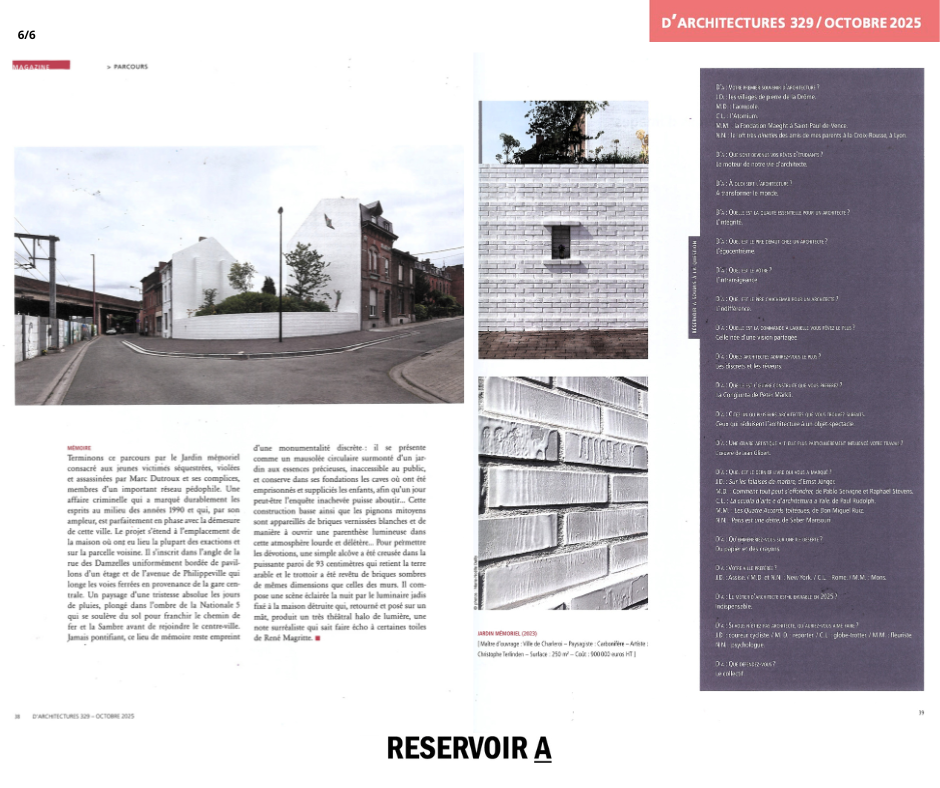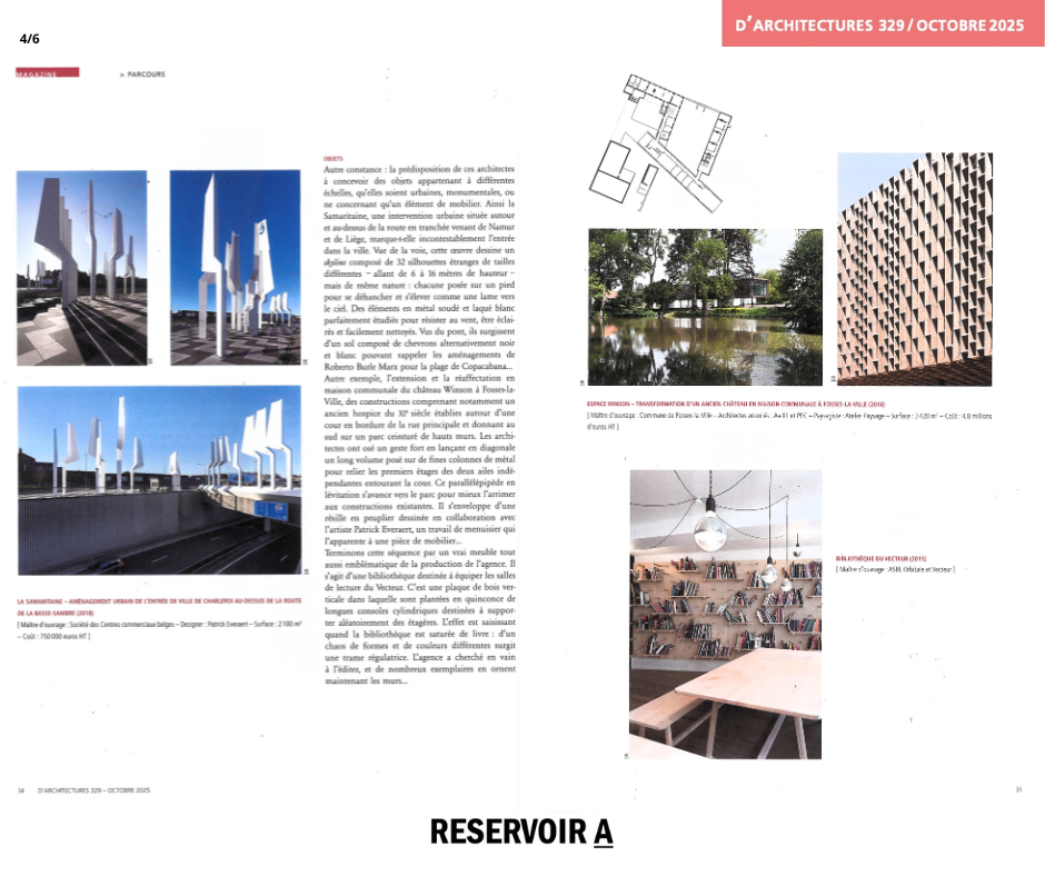 Cette publication a une saveur particulière pour notre bureau, car le magazine D’A est l’une des références éditoriales auxquelles nous accordons beaucoup d’importance. Elle représente un grand acte de reconnaissance pour les membres de RESERVOIR A.